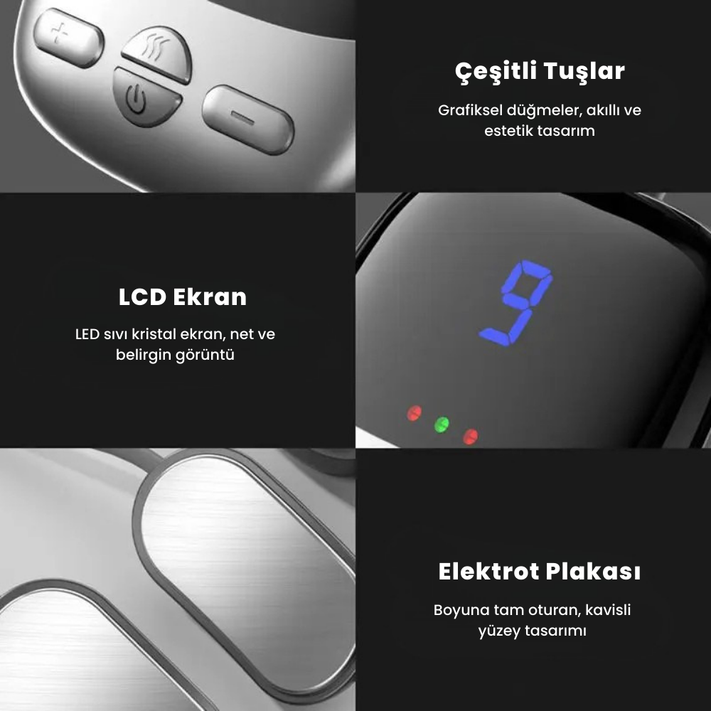 Boyun bölgesinde gün boyu biriken gerginliği “tahmin ederek” değil,kontrol ederek yönet. Bu cihaz;kullanımı kolay tuşları,net LCD ekranıveboyna oturan elektrot plakasıile her seferinde aynı konforu yakalaman için tasarlandı.