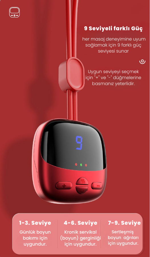 Boyun bölgesinde gün içinde biriken gerginlik ve yorgunluk hissini azaltmaya yardımcı olmak içinısı + EMS uyarım kombinasyonu sunan bir rahatlama cihazıdır. Düzenli kullanımda konfor ve rahatlama rutini oluşturmayı hedefler.